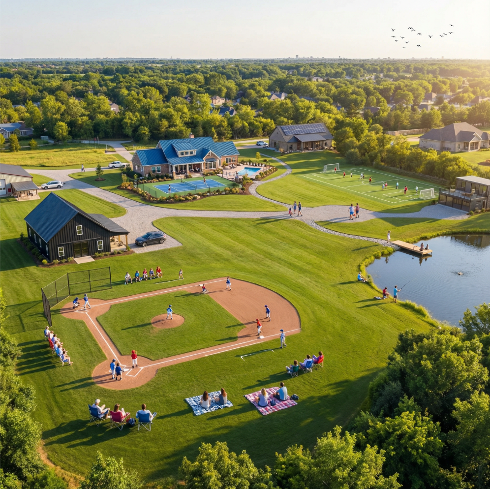 All Star Sports Village is a brand-new destination set on 40 wooded acres, designed for teams and sports-loving families. Rent one or multiple luxury homes sleeping 14-20 guests. Enjoy on-site fields, pickleball courts, horseshoes, and game rooms for the ultimate group stay. Keep your team together on one property, host your family reunion, or just come to relax! Each home features 5 bedrooms with most having a private bath for each bedroom, full kitchens, WiFi and living areas. Select homes have bunk rooms, private pool, hot tub and oversized patios or balconies with views!